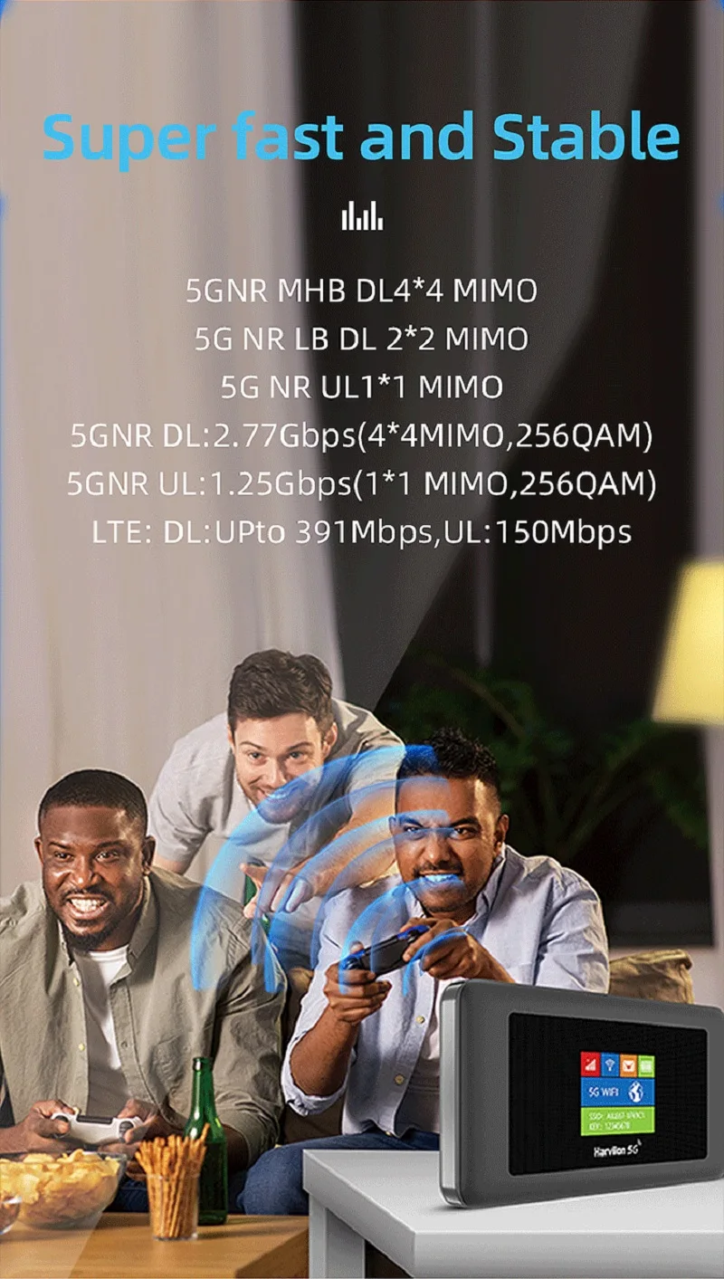 Home Product Portable 5G Portable WiFi Router Unlocked 5G SIM / ESIM MiFis Router With WiFi 2.4G & 5G 5000mAh Battery